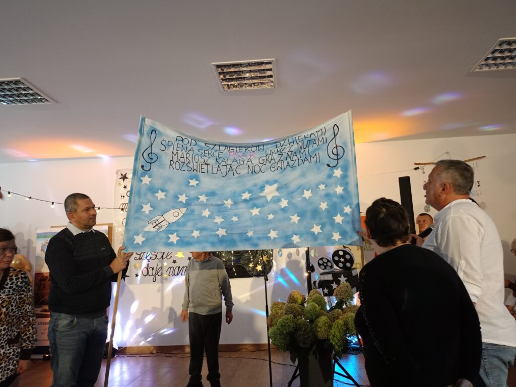 17 września mieliśmy ogromną przyjemność gościć na wyjątkowym koncercie „Muzycznej podróży do gwiazd” w wykonaniu Mariusza Kalagi. W czasie spotkania wzięliśmy udział w konkursie na transparent związany z gwiazdą- Mariuszem Kalagą.