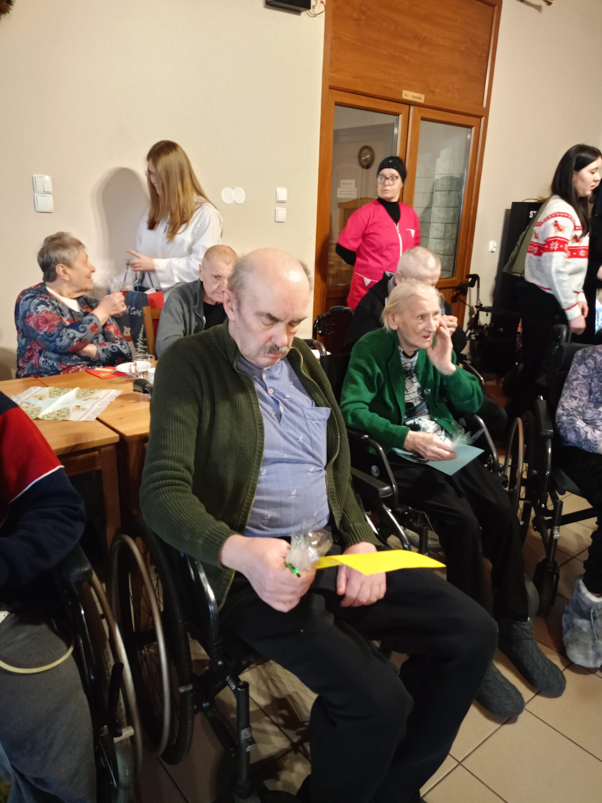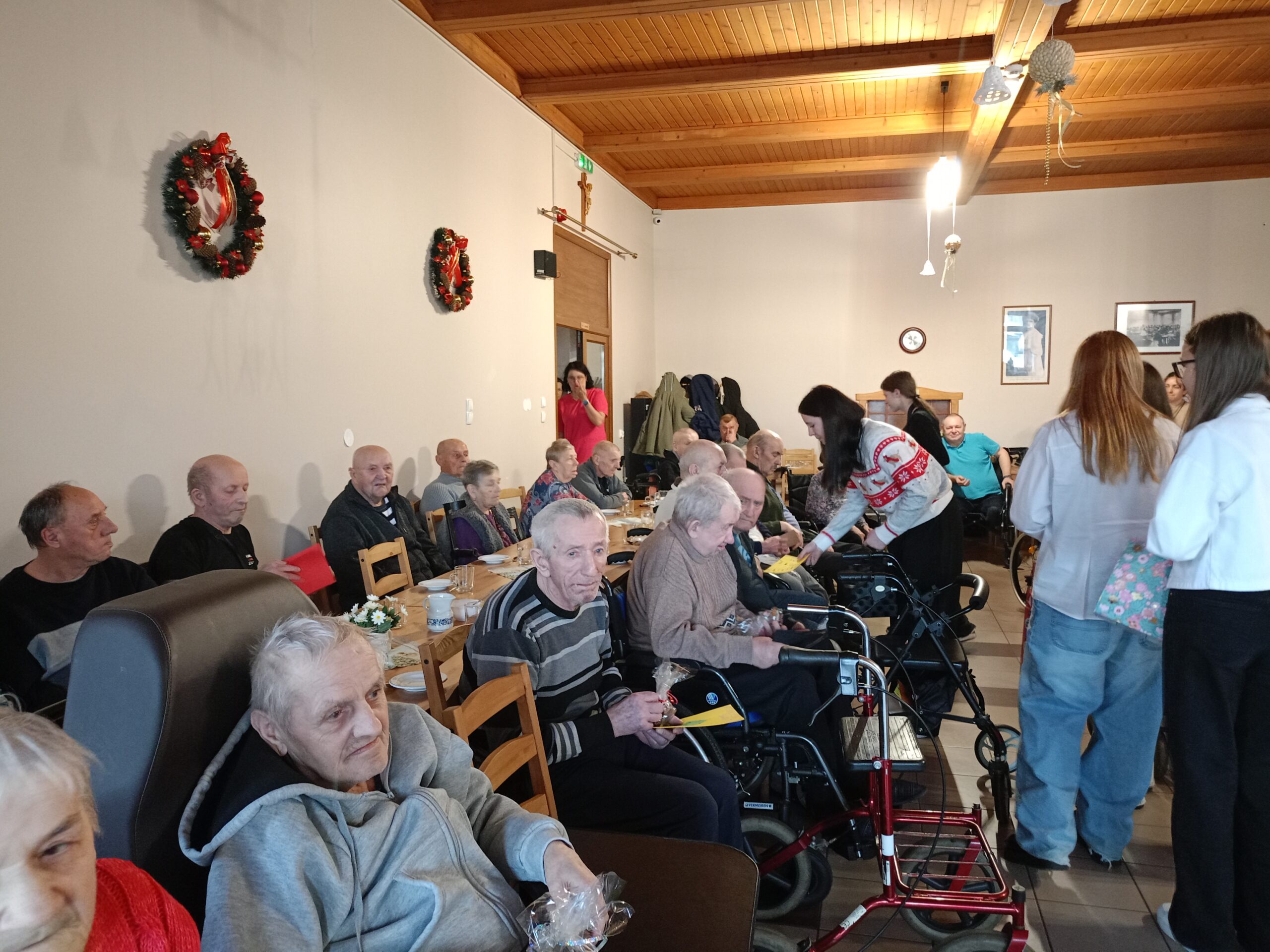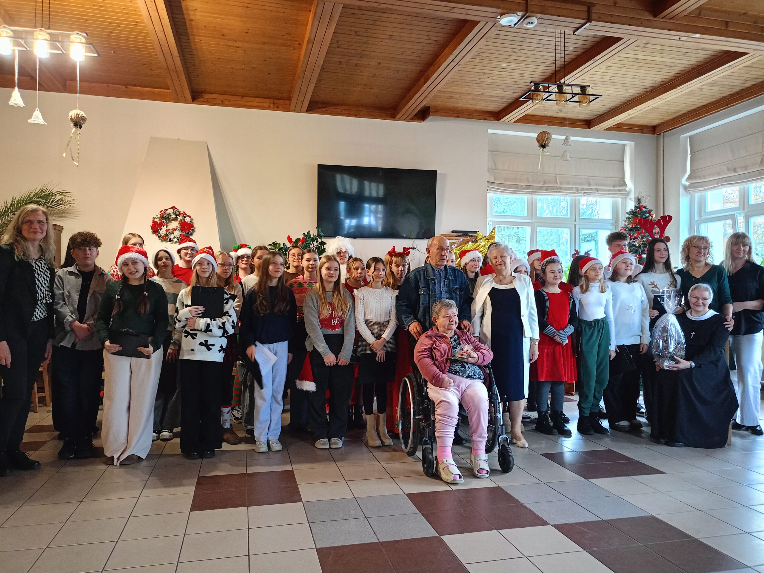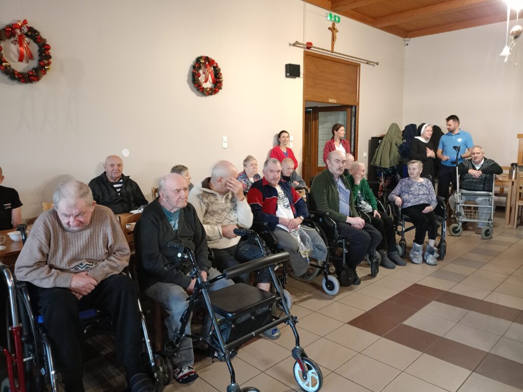 Z życzeniami oraz wspólnym kolędowaniem przybyli do nas dzisiaj (tj. 17 grudnia) uczniowie ze Szkoły Podstawowej im. Henryka Sienikiewiczanr 1 z Ostrzeszowa. Był to naprawdę piękny czas- pełen wzruszeń, radości i wspólnego świętowania. Dzieci obdarowały wszystkich pierniczkami i własnoręcznie przygotowanymi kartkami. Pamiętały również o tych, którzy pozostali w swoich pokojach- nikt nie został pominięty. Dziękujemy za ciepło i uśmiechy oraz tę wyjątkową atmosferę, któą stworzyliście.