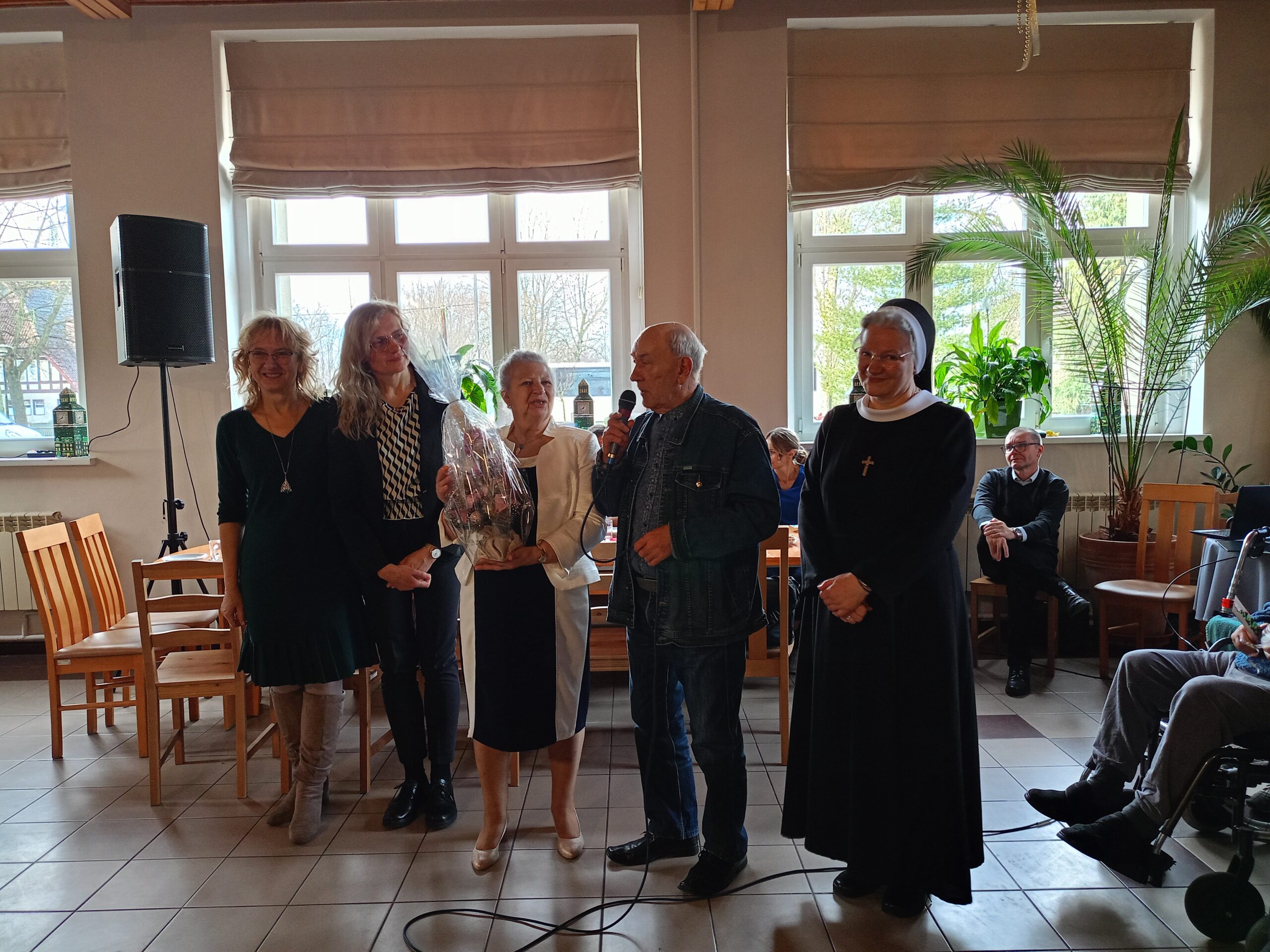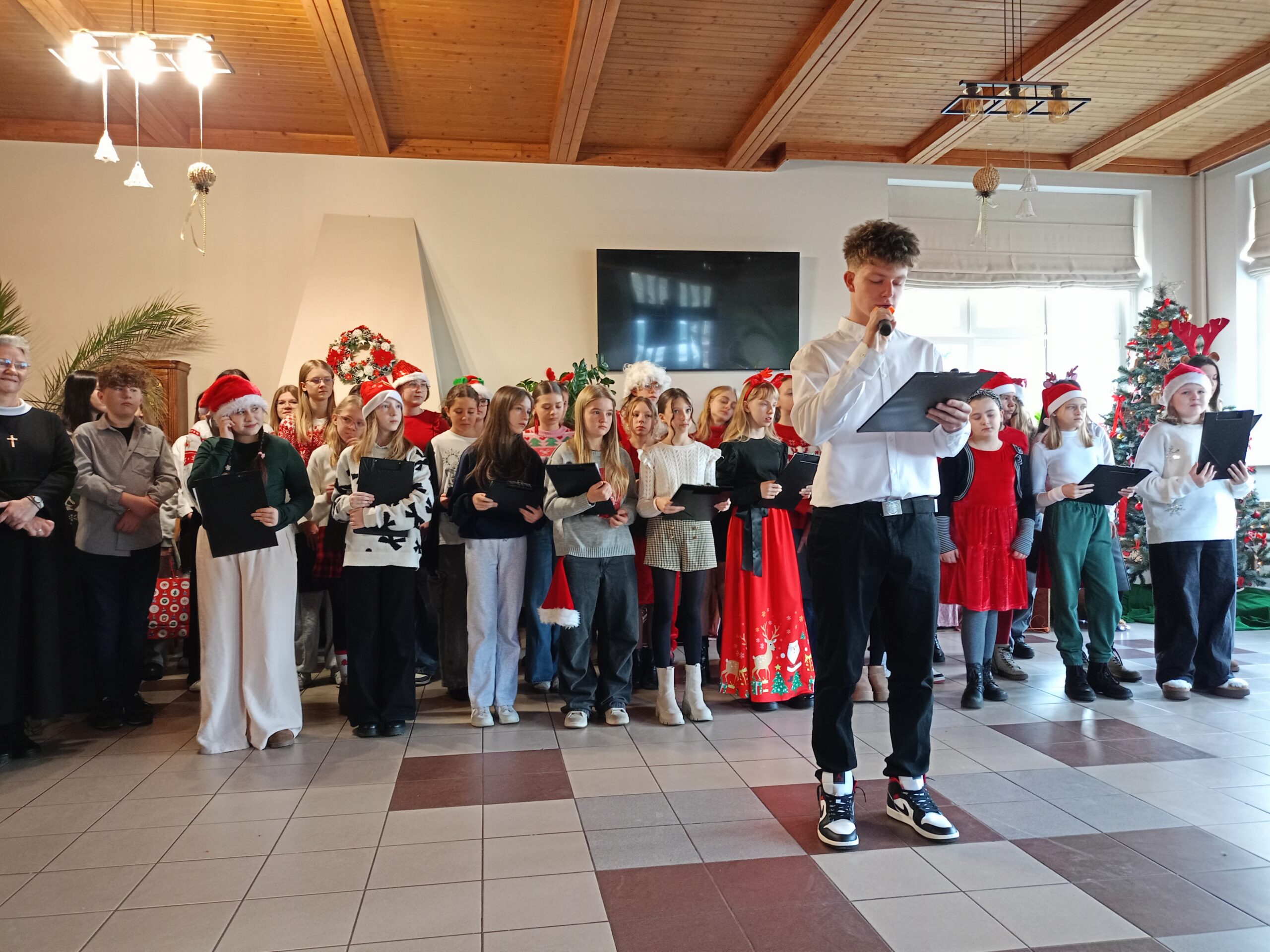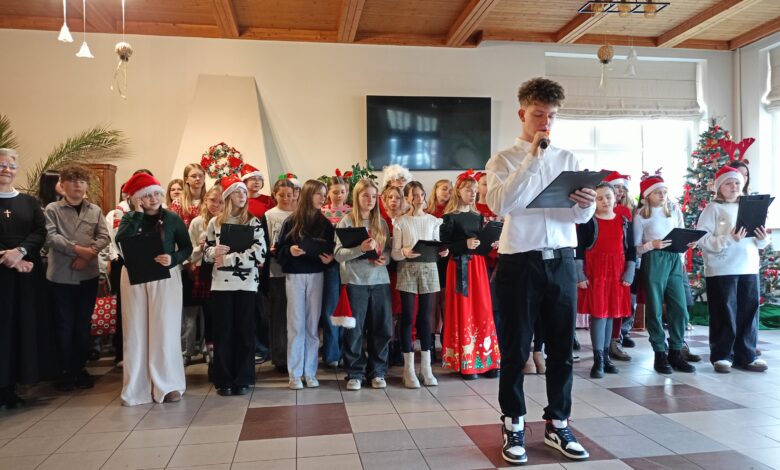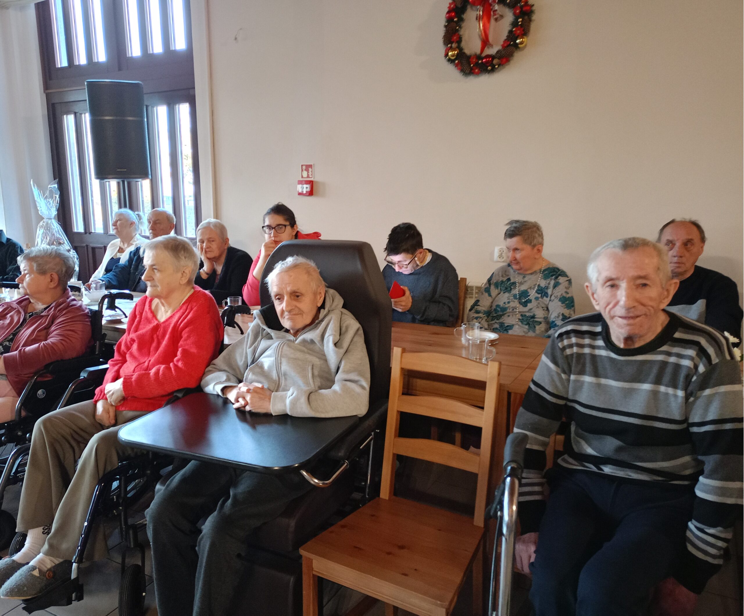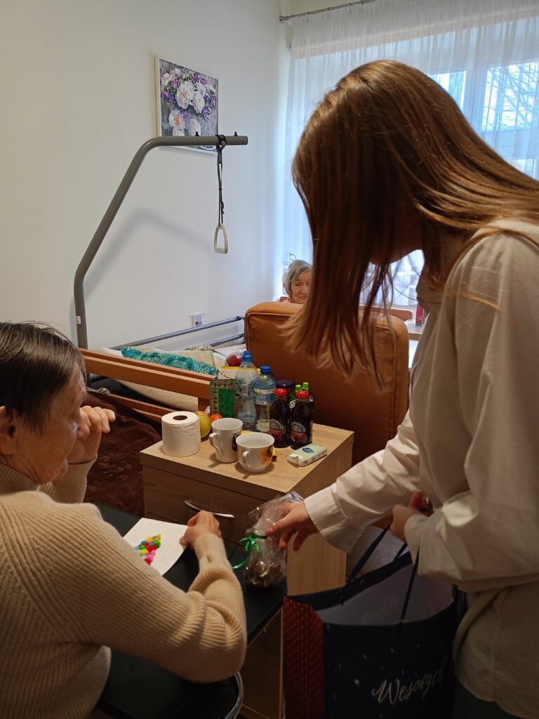 Z życzeniami oraz wspólnym kolędowaniem przybyli do nas dzisiaj (tj. 17 grudnia) uczniowie ze Szkoły Podstawowej im. Henryka Sienikiewiczanr 1 z Ostrzeszowa. Był to naprawdę piękny czas- pełen wzruszeń, radości i wspólnego świętowania. Dzieci obdarowały wszystkich pierniczkami i własnoręcznie przygotowanymi kartkami. Pamiętały również o tych, którzy pozostali w swoich pokojach- nikt nie został pominięty. Dziękujemy za ciepło i uśmiechy oraz tę wyjątkową atmosferę, któą stworzyliście.