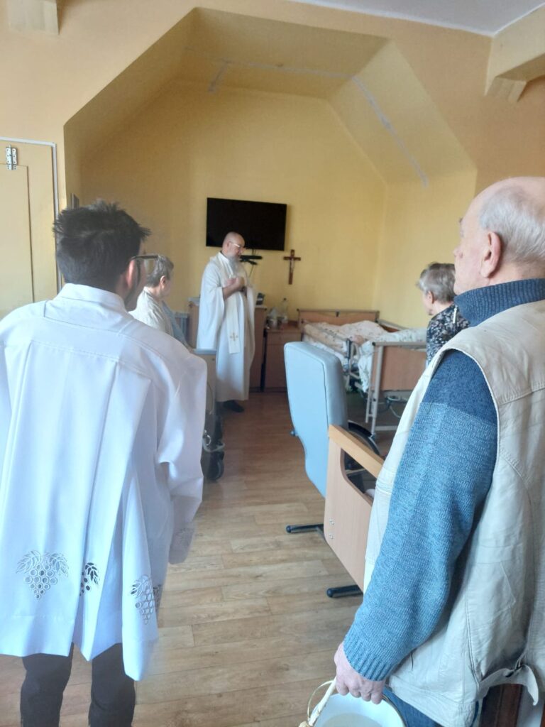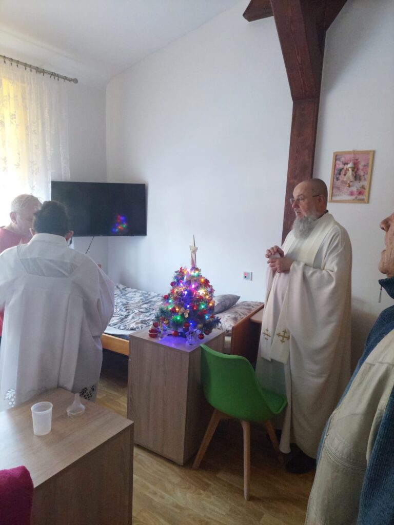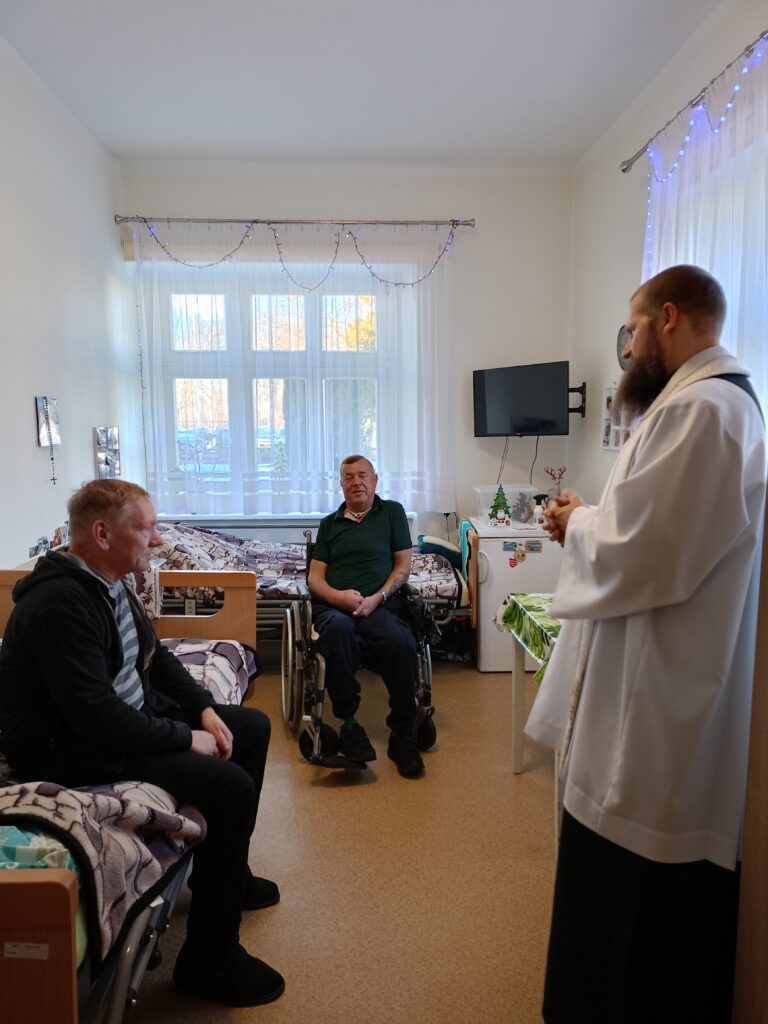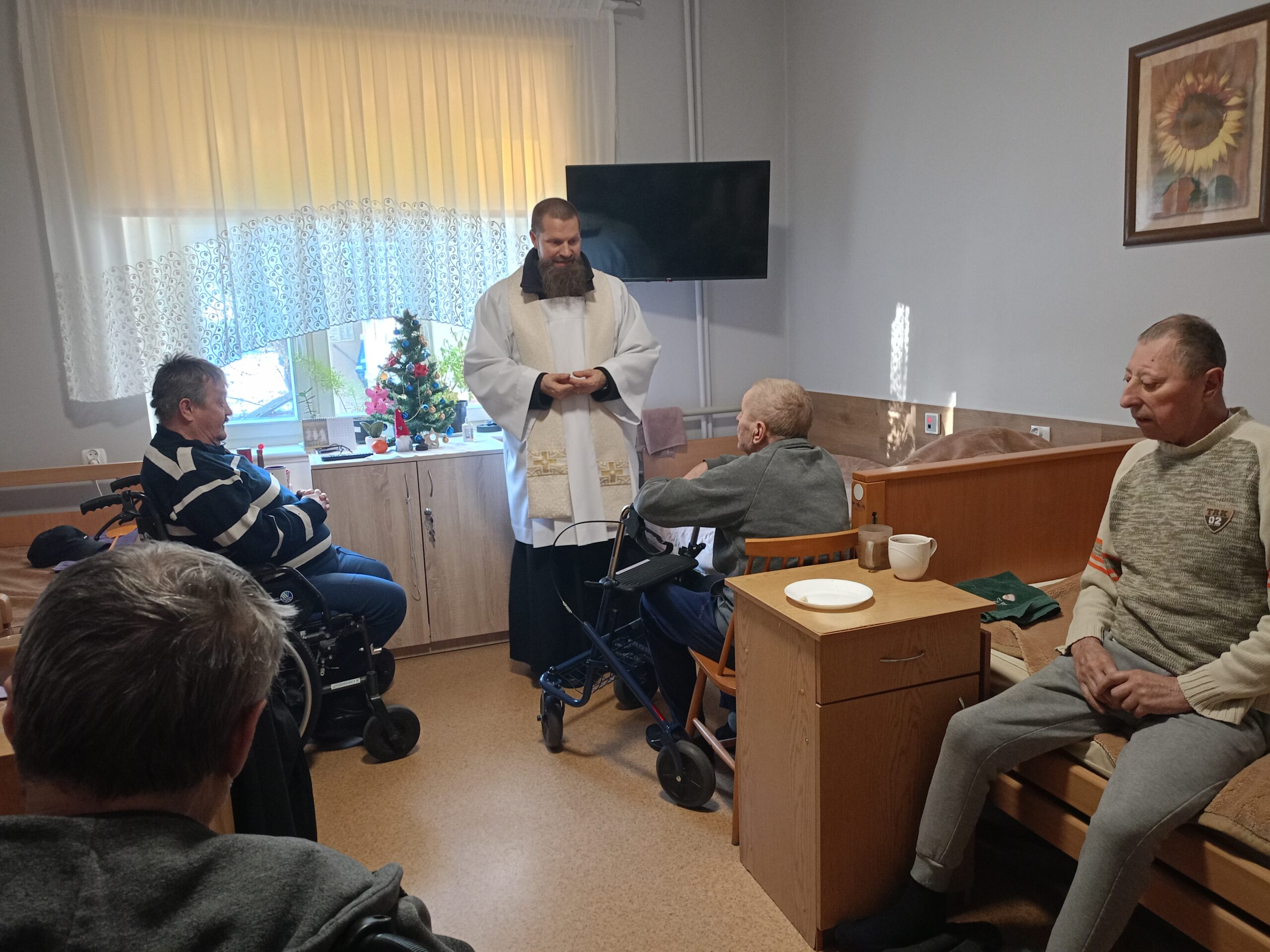 Nowy 2026 rok zaczęliśy od kolędy duszpasterskiej w naszym Domu. Księża odwiedzili każdego Mieszkańca oraz Pracownika, by przekazać błogosławieństwo. Wizyty kolędowe zostały poprzedzone Mszą Św. odprawioną w Kaplicy Domu.