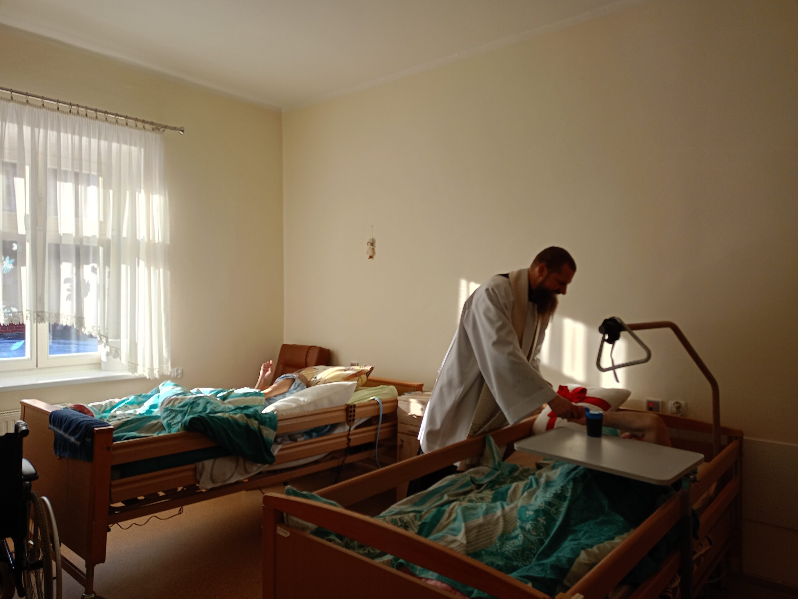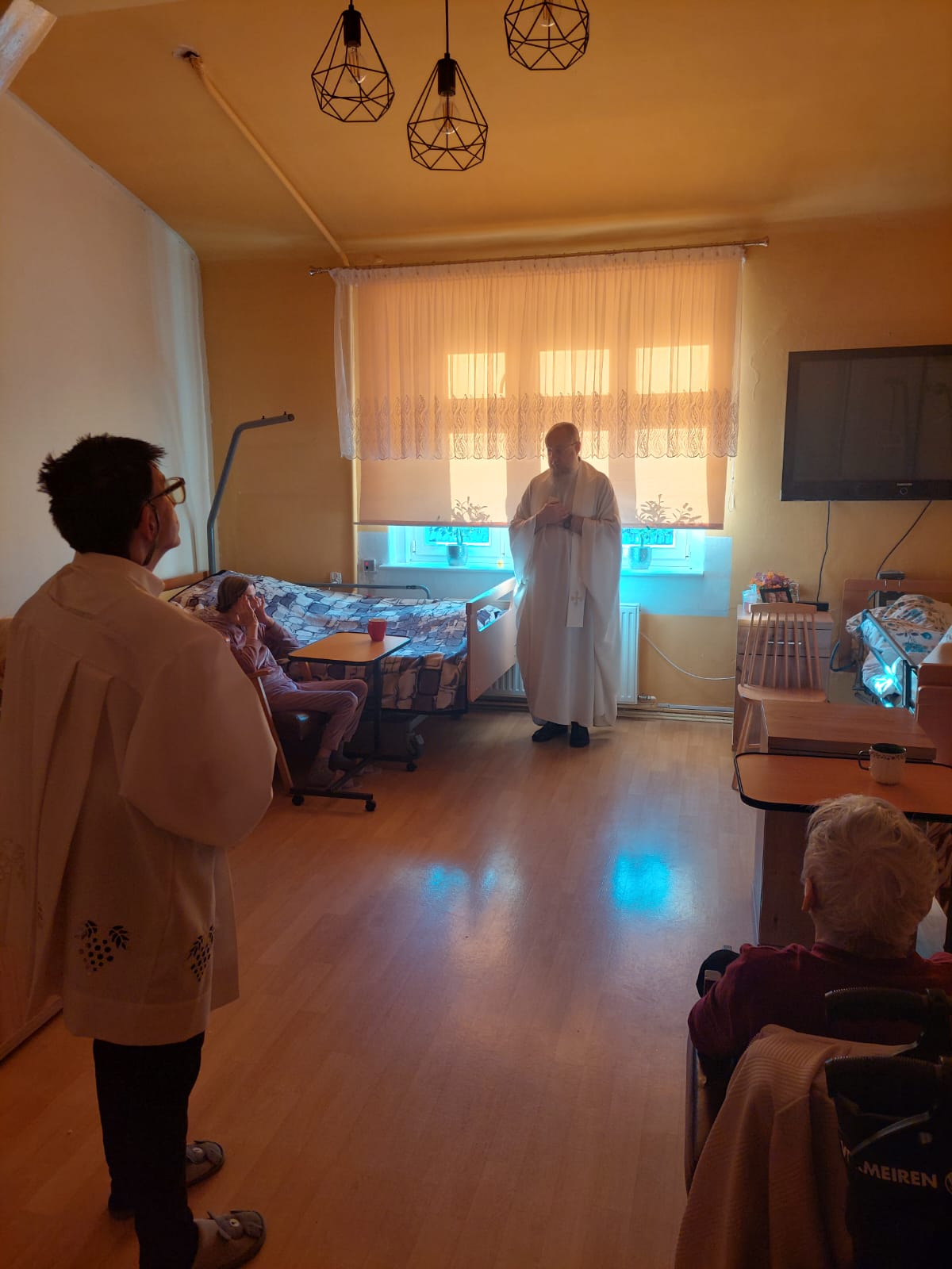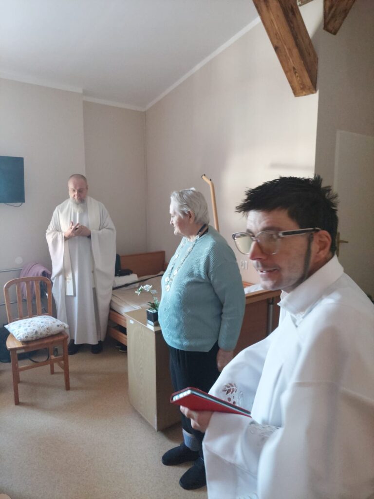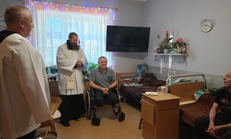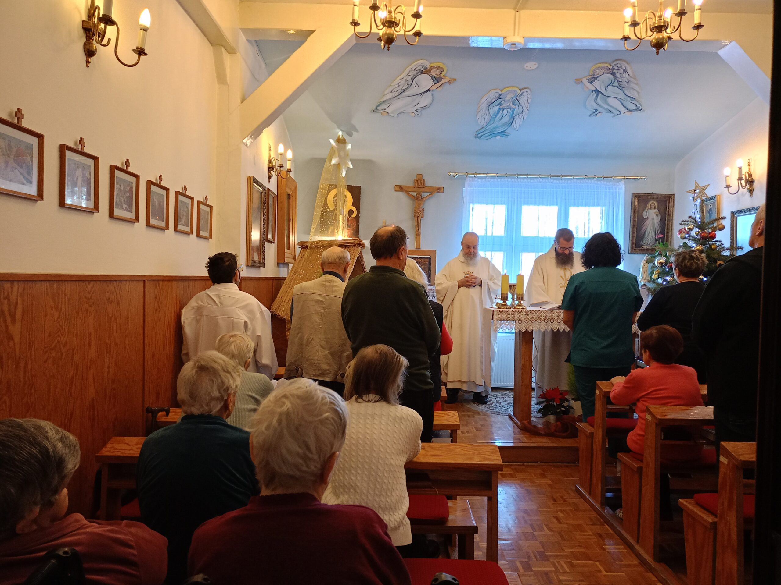 Nowy 2026 rok zaczęliśy od kolędy duszpasterskiej w naszym Domu. Księża odwiedzili każdego Mieszkańca oraz Pracownika, by przekazać błogosławieństwo. Wizyty kolędowe zostały poprzedzone Mszą Św. odprawioną w Kaplicy Domu.