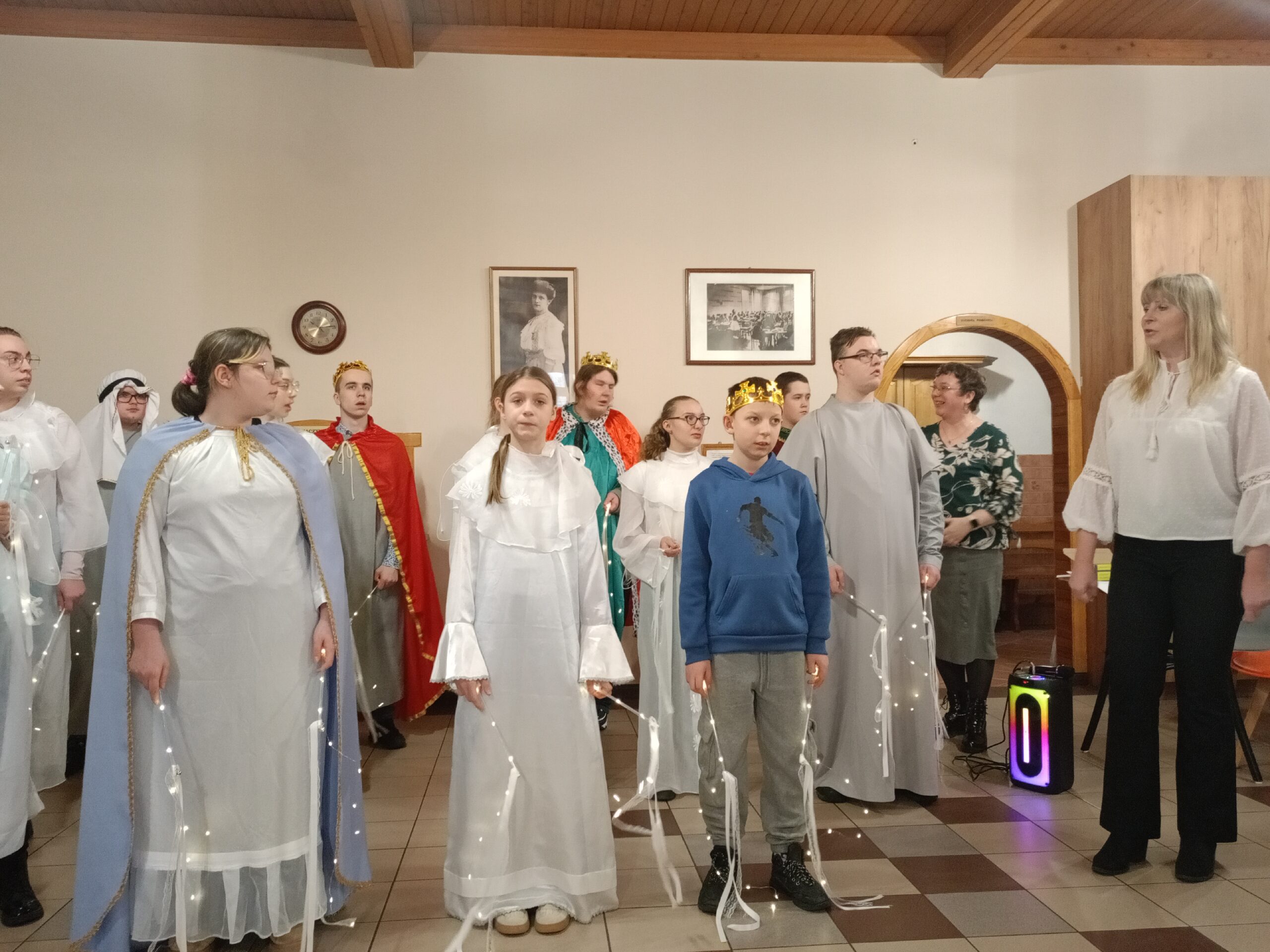 Odwiedziła nas dzisiaj młodzież ze Specjalnego Ośrodka Szkolno- Wychowawczego z Ostrzeszowa z przedstawieniem jasełkowym. Zostały także przekazane prezenty dla naszych mieszkańców. Był ogrom radości i braw. Dziękujemy za poświęcony czas.